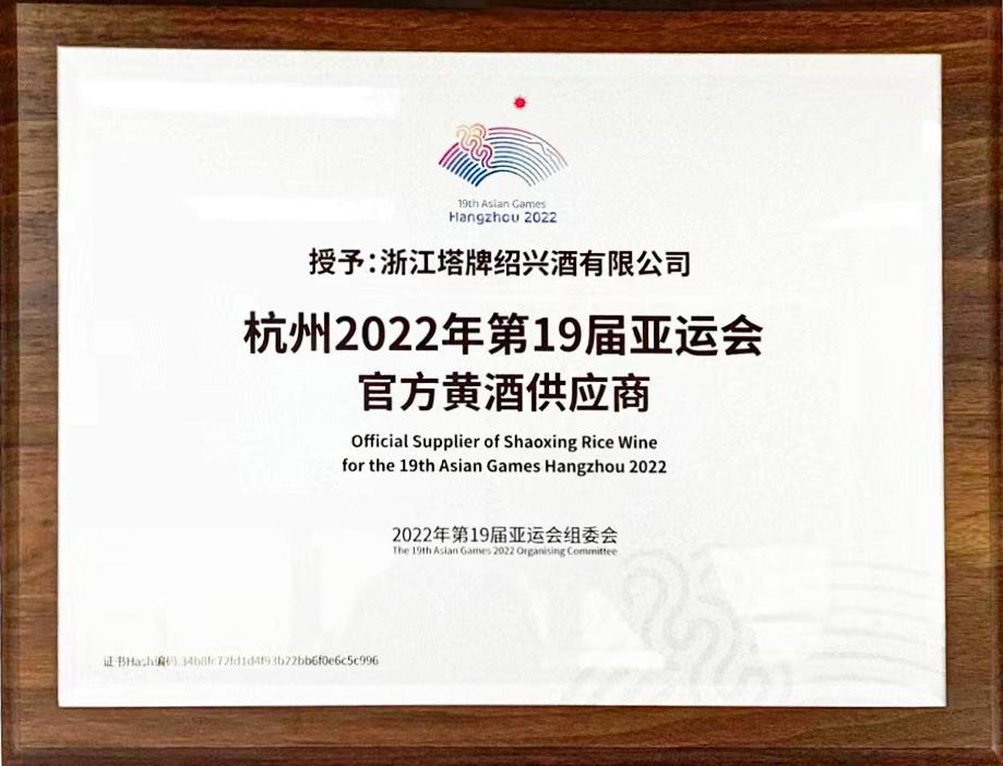 塔牌紹興酒授牌成為杭州2022年亞運會官方指定黃酒